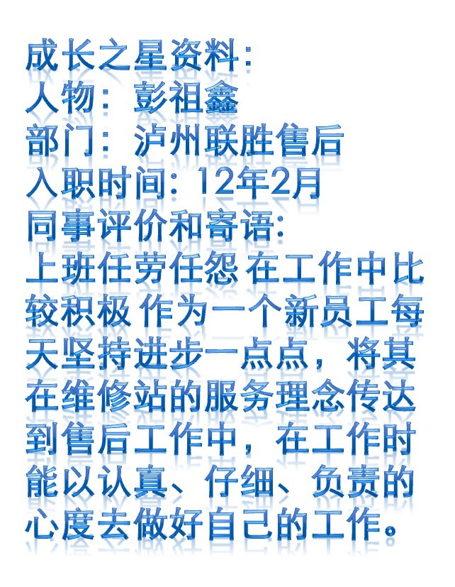 瀘州聯(lián)勝2012年6月成長之星彭祖鑫